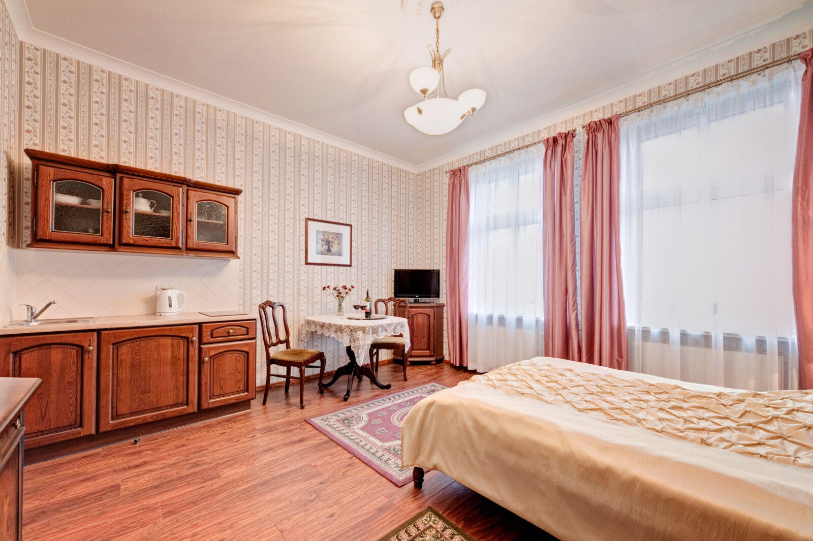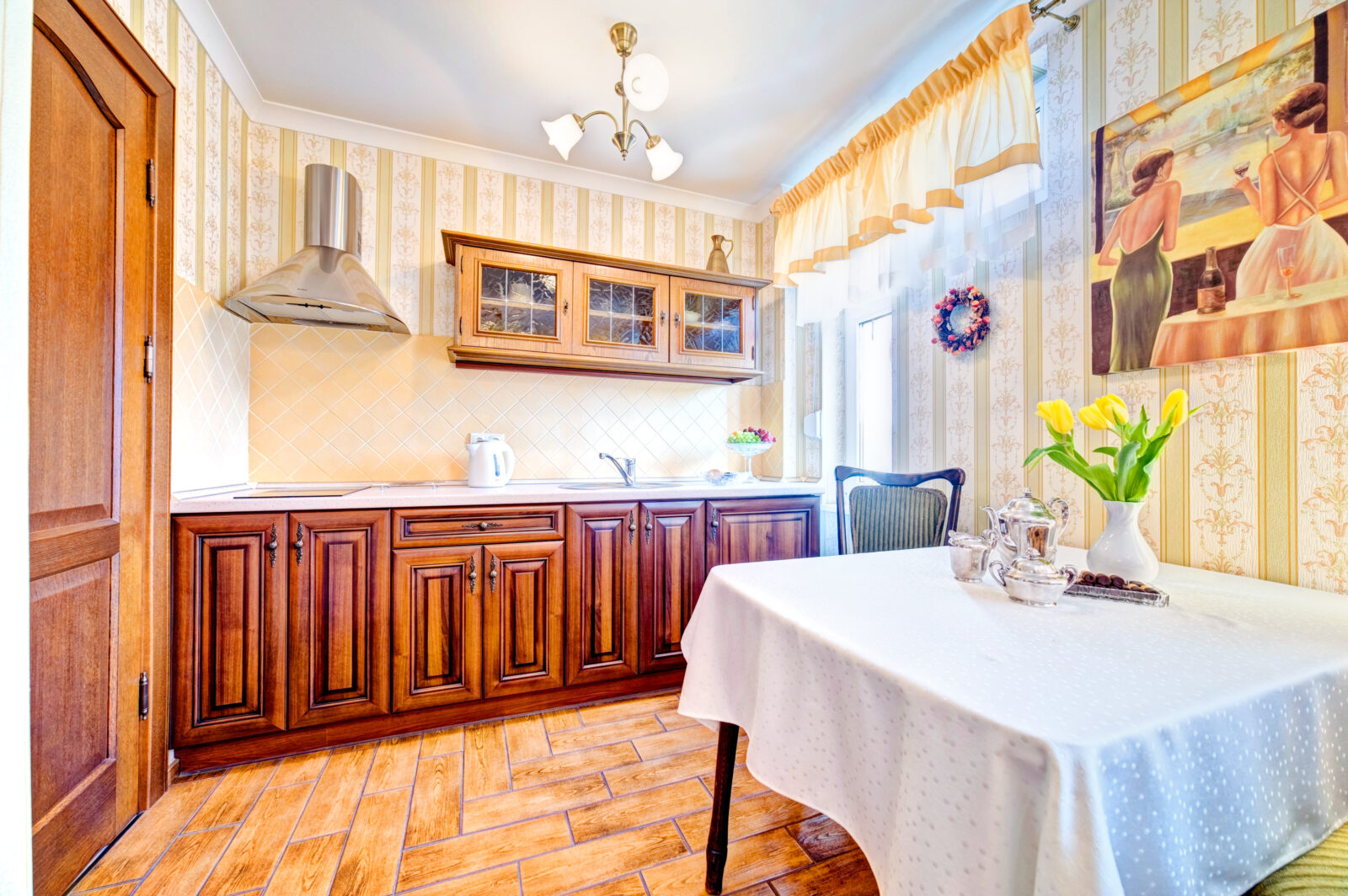 Duft von goldener knuspriger Brotkruste? Selbstgemache Kuchen, derer Geschmack die Gaumen überwältigt? Eine Tasse erfrischenden Kaffee? Das und vieles mehr können unsere Gäste während angebotener Frühstücke auf dem Tisch finden. Falls sich jemand für eigene Zubereitung der Mahlzeiten entscheidet, kann er die ausgestattete Küche im Appartement nutzen.
